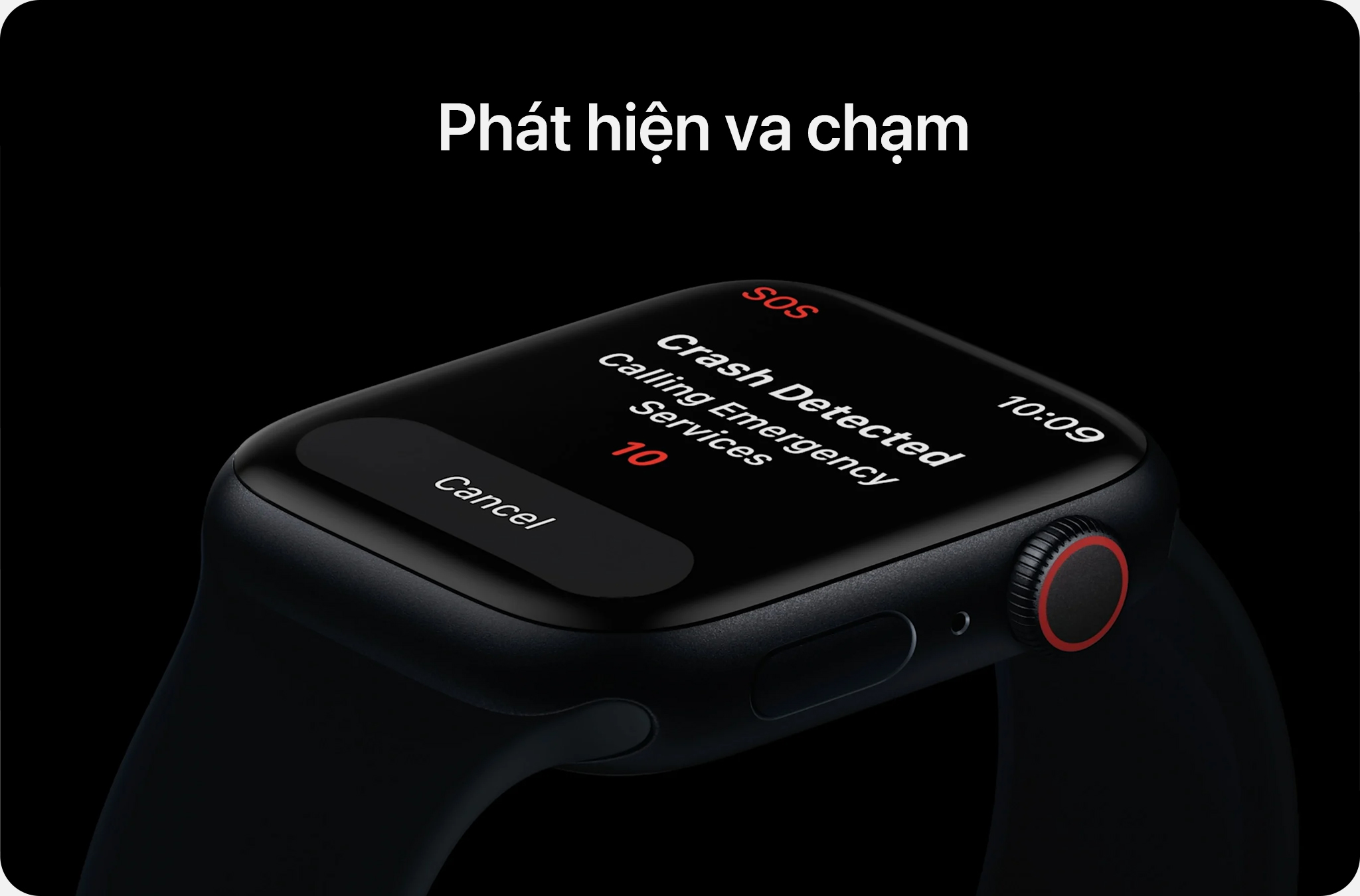 Với các cảm biến độ nhạy cao và hàng triệu giờ thử nghiệm giúp Apple Watch Series 8 có thể phát hiện va chạm phía trước, va chạm bên hông, va chạm từ phía sau và va chạm khi lật xe.