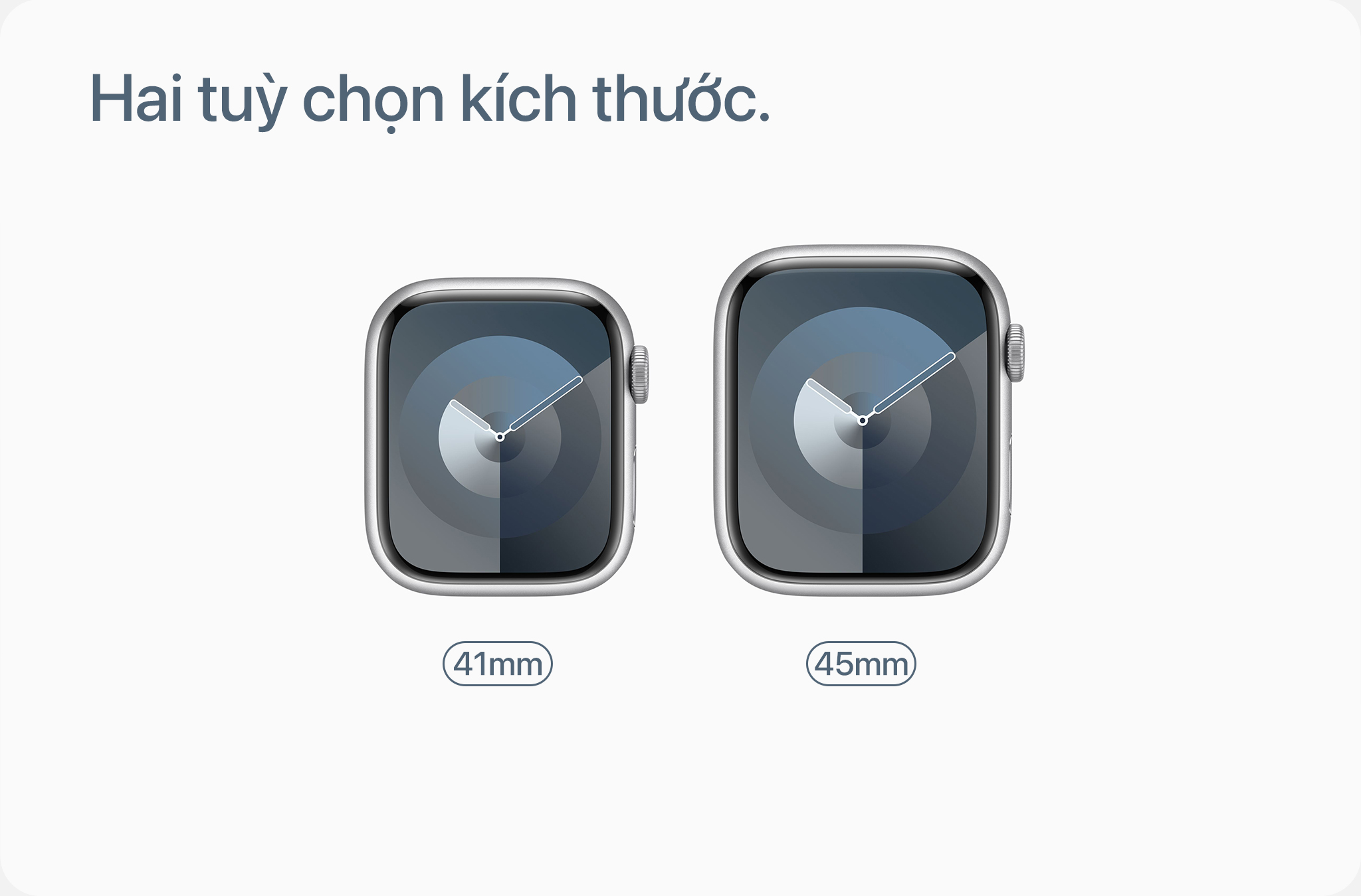- Nếu bạn có cổ tay nhỏ, kích thước từ 135mm - 150mm thì Size 41mm sẽ vừa với cổ tay. Apple Watch size 45mm thường phù hợp cho cổ tay từ 145mm - 165mm