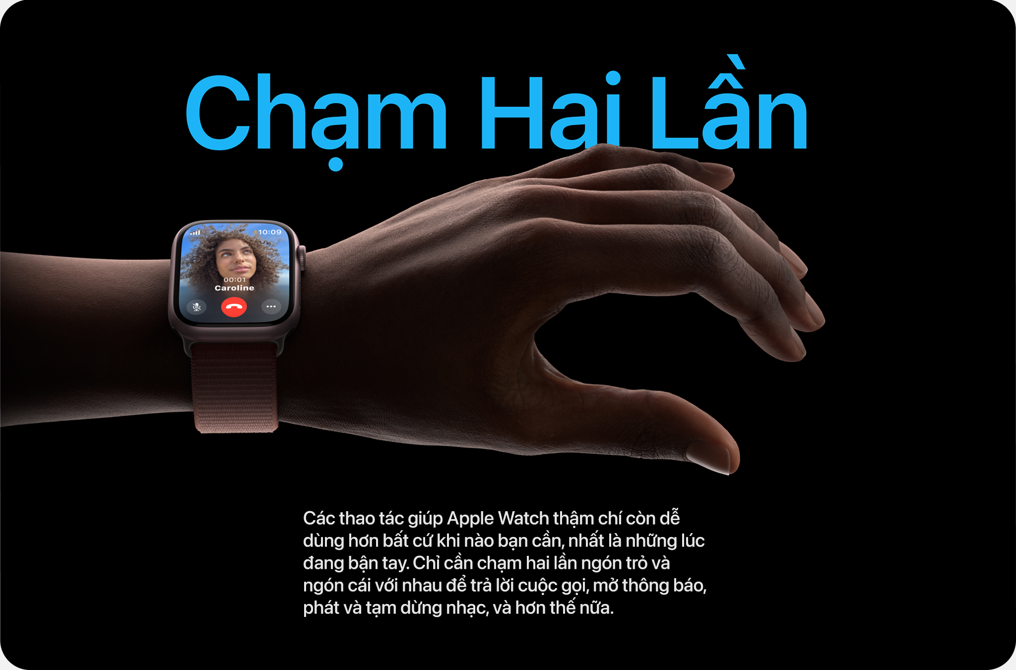 - Điều khiển Apple Watch chỉ tới 1 tay - Double Tap, giúp việc sử dụng Apple Watch trở nên dễ dàng và trực quan hơn