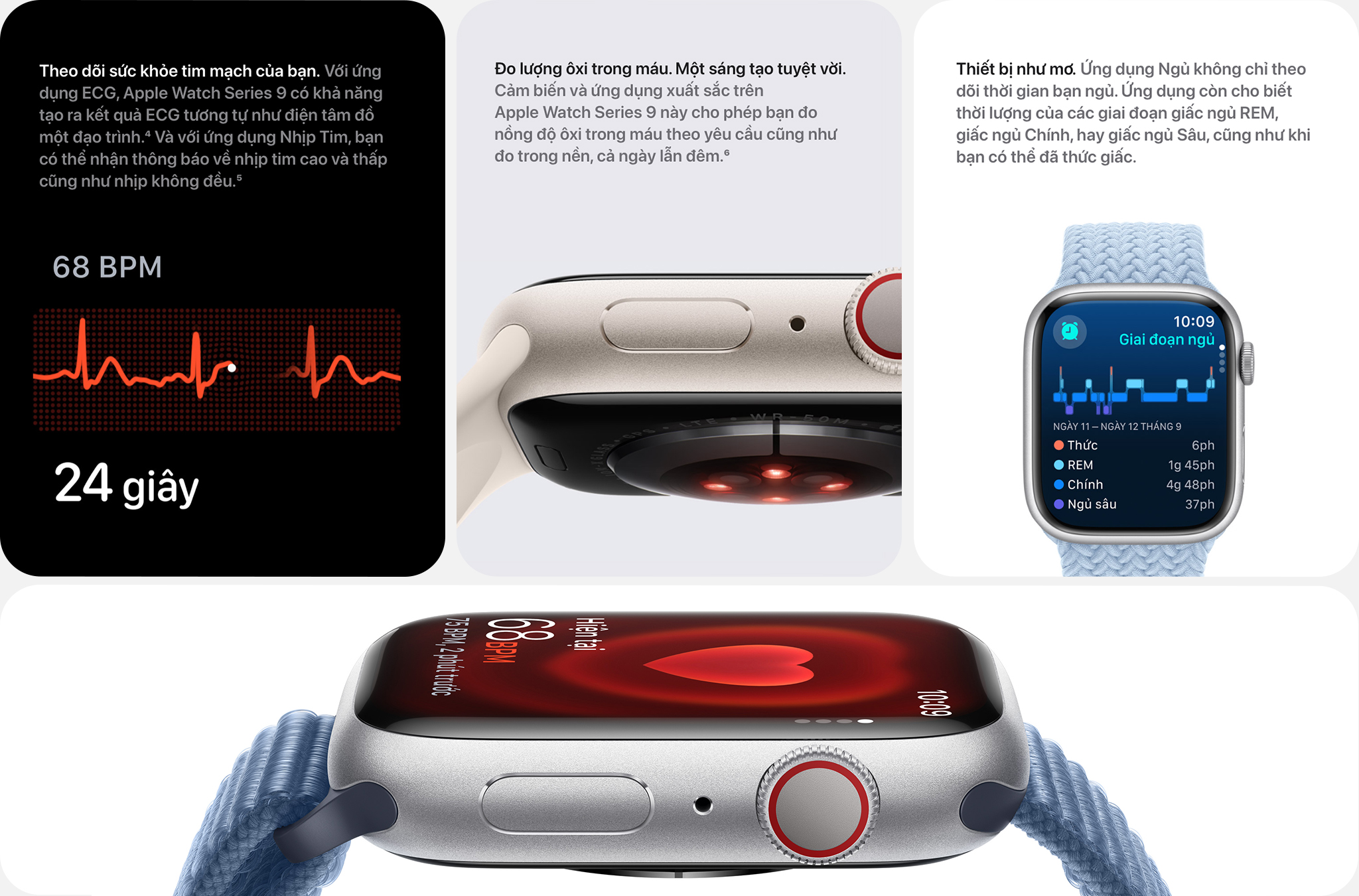 - Nhiều tính năng theo dõi sức khỏe: Đo nhịp tim, Đo lượng oxy trong máu, Theo dõi giấc ngủ ..v..v