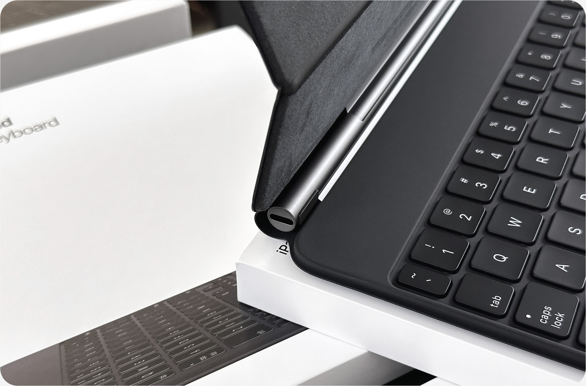 Bên cạnh đó, trên Magic Keyboard còn hỗ trợ cổng sạc nhanh USB-C giúp người dùng có thể sạc iPad mà không cần cắm sạc trực tiếp vào iPad. Điều này làm tăng tính thẩm mỹ cũng như tối ưu việc sử dụng không gian làm việc.