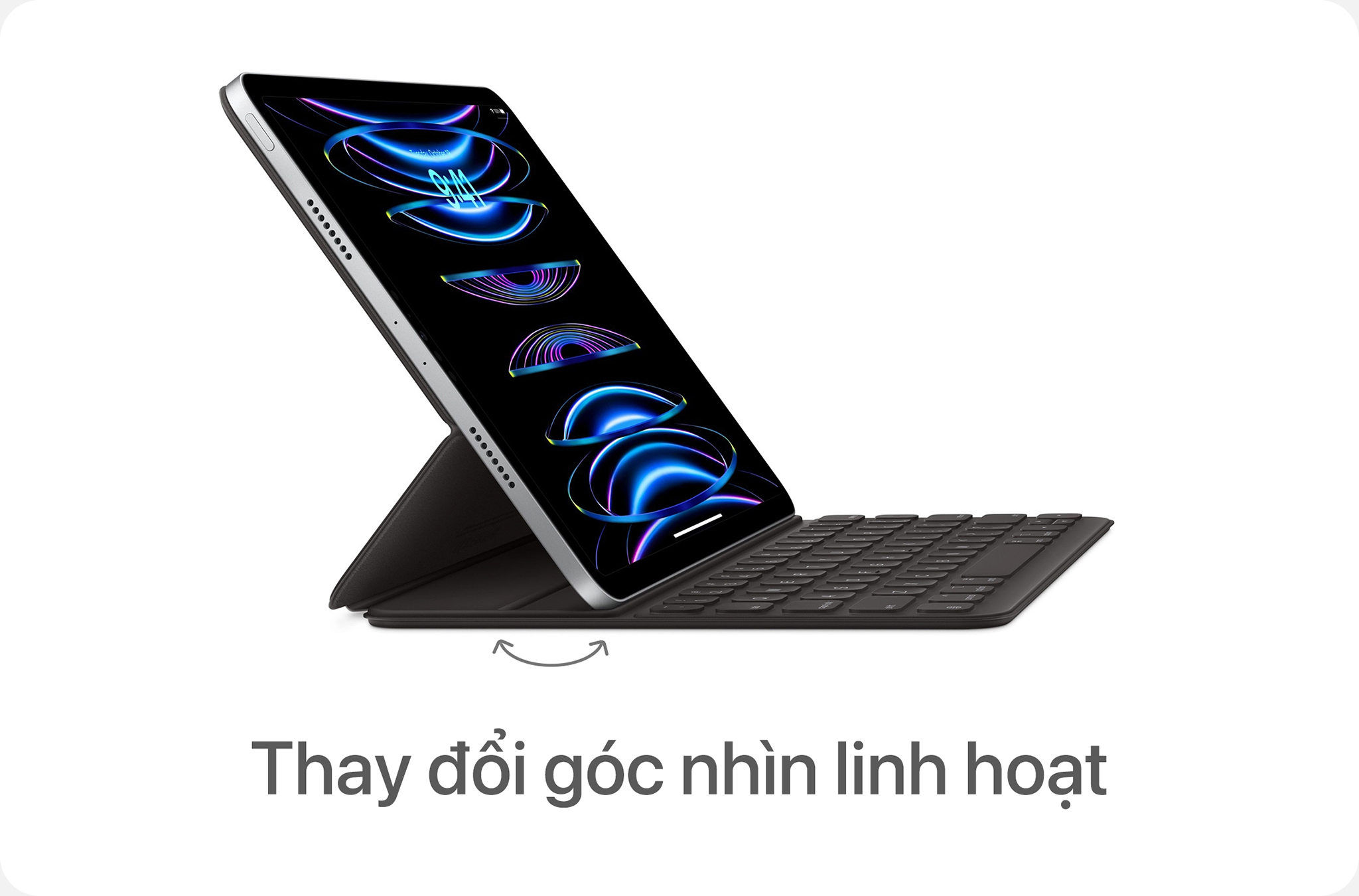 Smart Keyboard Folio for iPad Pro cũng có khả năng điều chỉnh được 2 góc nhìn khác nhau, giúp người dùng có thể linh hoạt thay đổi góc nhìn để phù hợp với nhu cầu sử dụng. Bạn có thể tùy chỉnh 2 góc độ của bàn phím vào từng trường hợp để dễ dàng thao tác hoặc thoải mái xem video, đọc sách, v.v. Điều này giúp cho người dùng có thể tận dụng tối đa tính năng của iPad cũng như bàn phím này, đồng thời giúp cho việc sử dụng trở nên tiện lợi hơn.