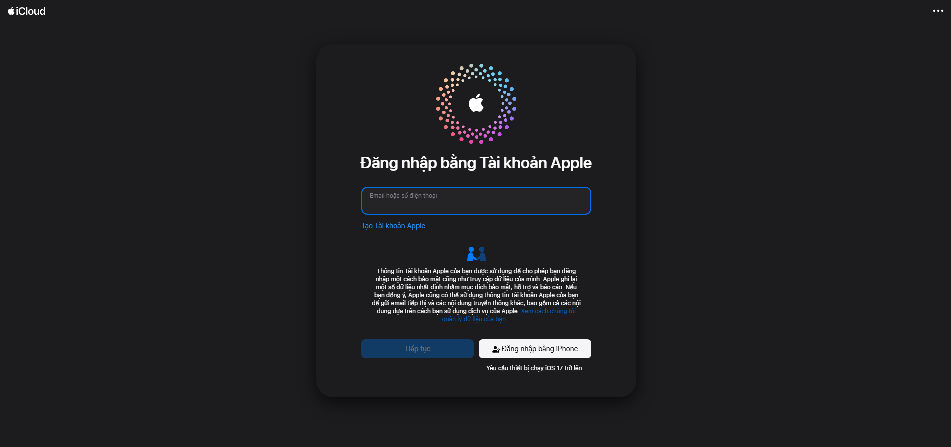 Bước 2: Đăng nhập tài khoản iCloud (ID Apple) của thiết bị bị mất
