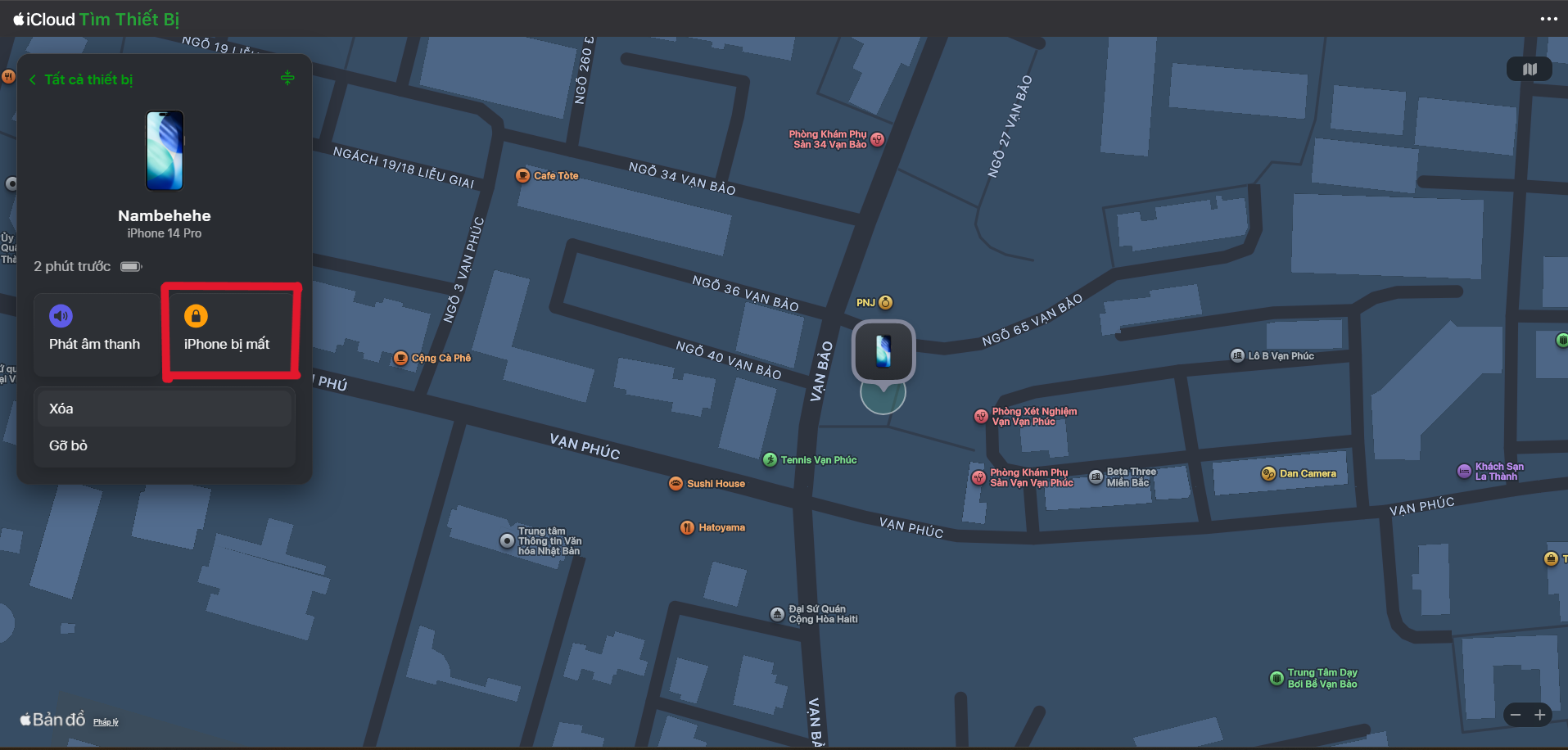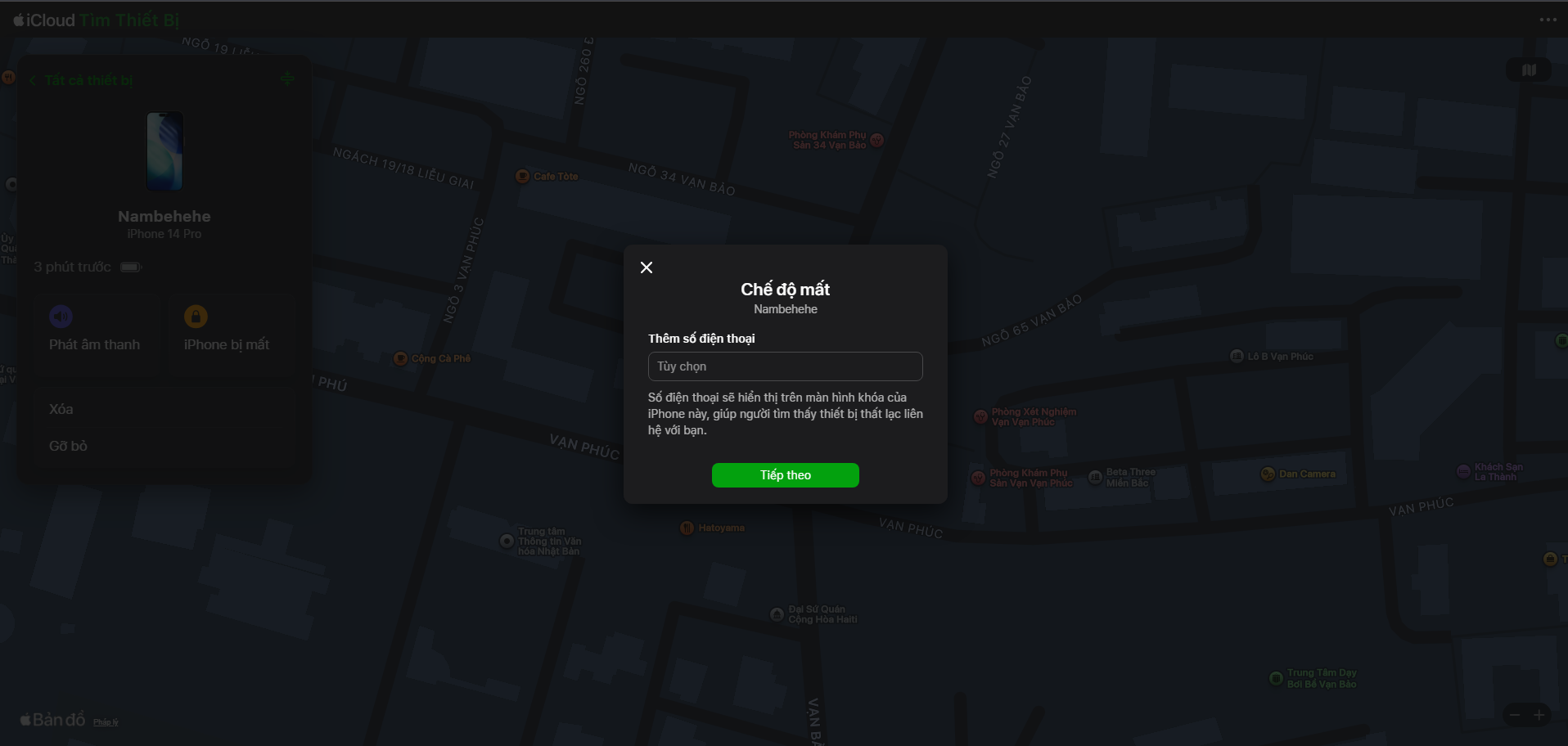 Chỉ đường: Nếu thiết bị vẫn còn pin và kết nối mạng, bản đồ sẽ hiển thị vị trí chính xác của máy.
