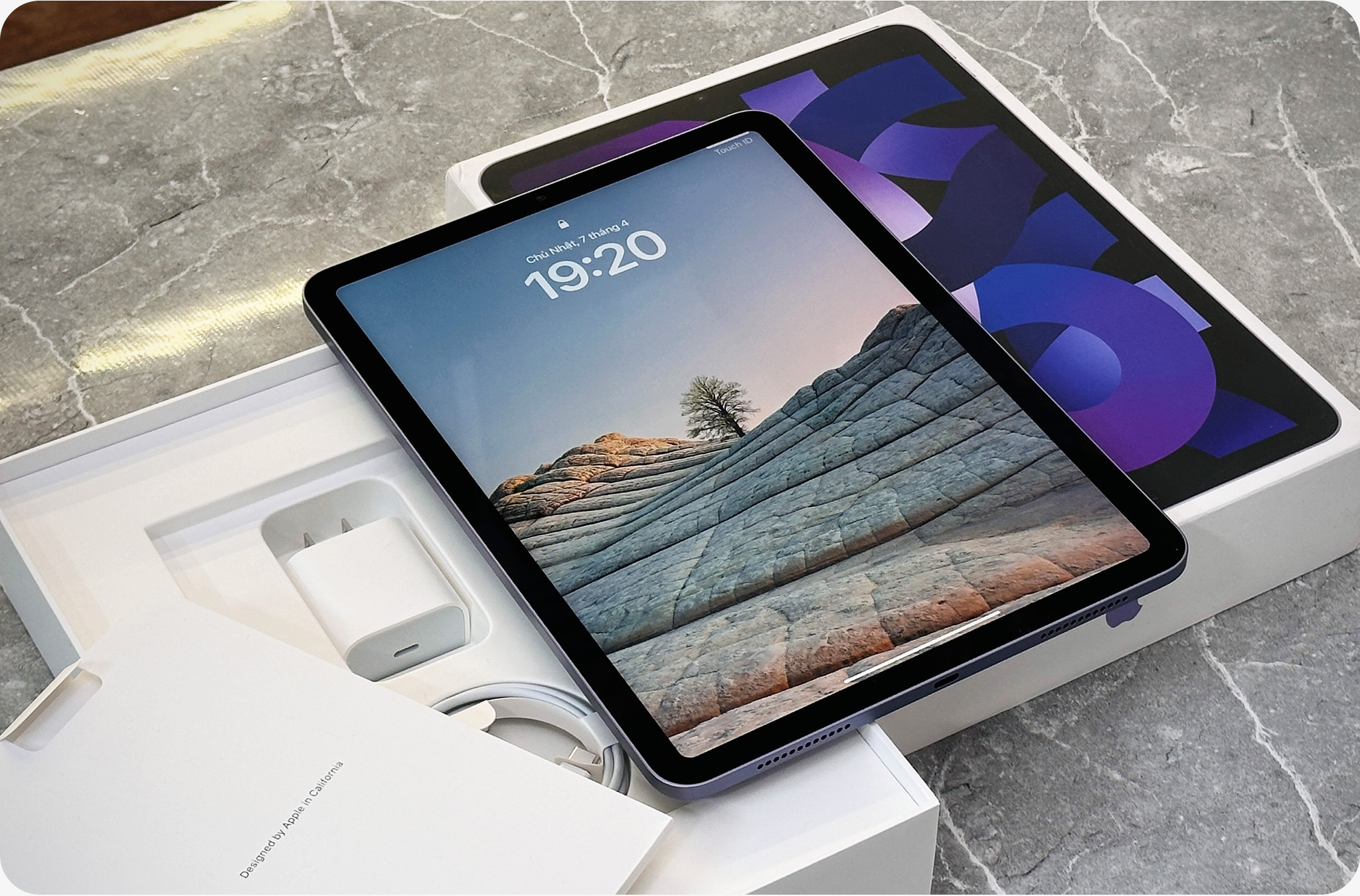 iPad Air 5 Like New đang bán tại Reseller có đầy đủ hộp, sạc cáp, sách hướng dẫn sử dụng theo máy.