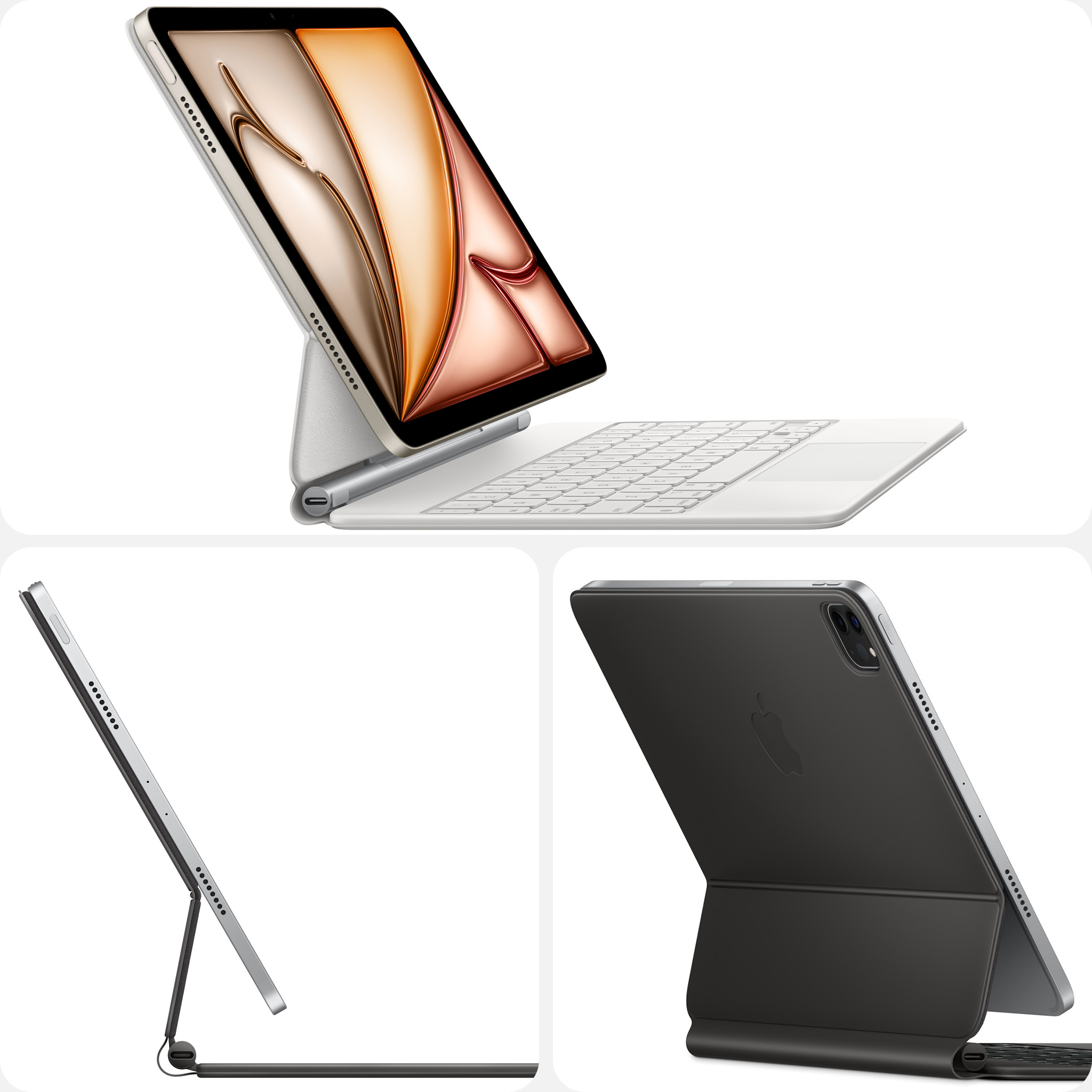 iPad Air 2025 cũng tương thích với Magic Keyboard cải tiến, nay đã bổ sung hàng phím chức năng mới (dù chưa sử dụng vỏ nhôm như iPad Pro). Phụ kiện này biến iPad Air thành một "MacBook mini" với trải nghiệm gõ phím thoải mái, bàn di chuột tiện lợi và bản lề linh hoạt để điều chỉnh góc nhìn. Magic Keyboard không chỉ tinh tế mà còn bảo vệ toàn diện cho iPad.