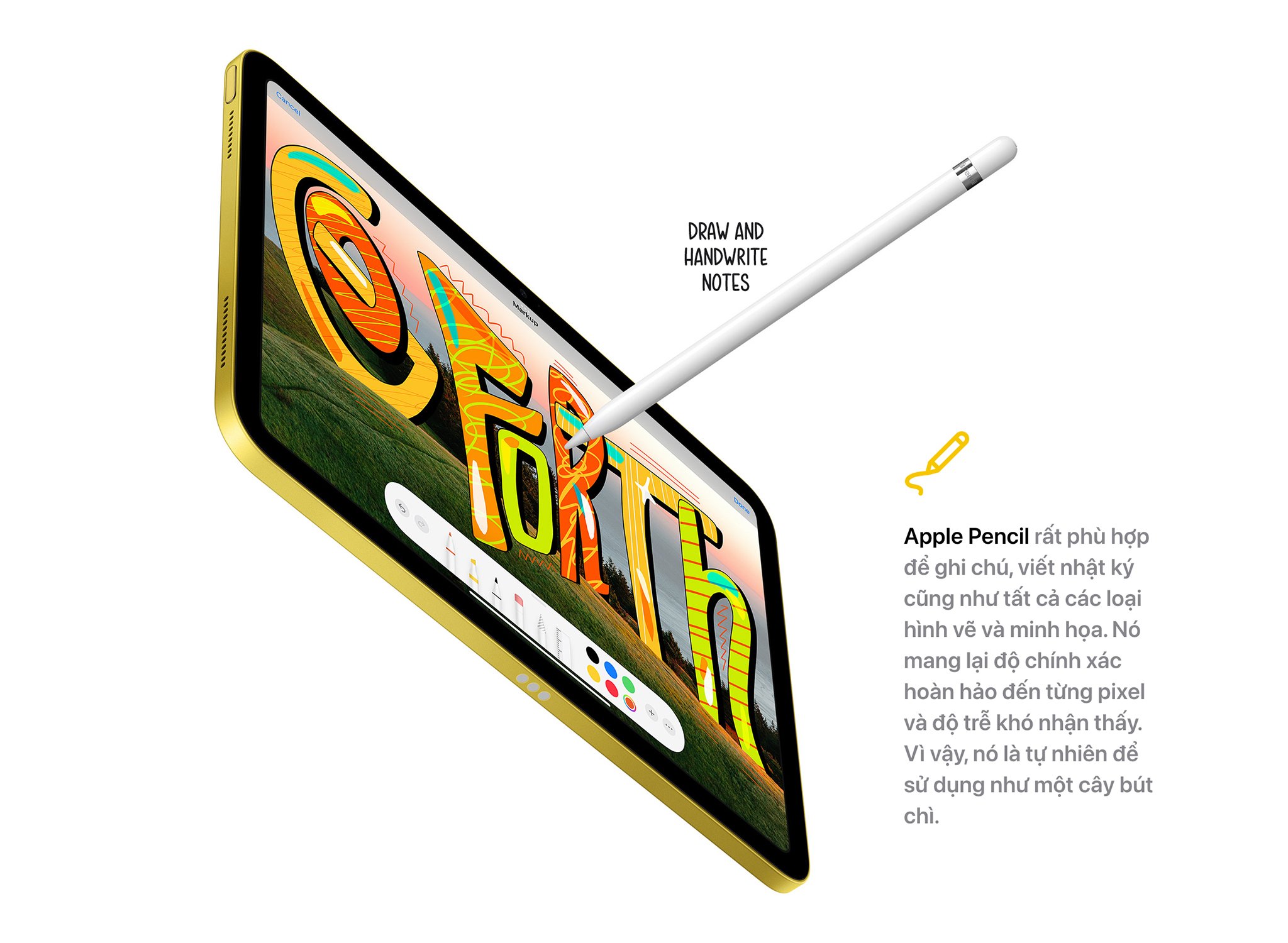 Khi kết hợp Apple Pencil với iPad Gen 10, bạn có thể thoả sức sáng tạo, học tập, làm việc trên chiếc iPad của mình một cách chuyên nghiệp hơn.