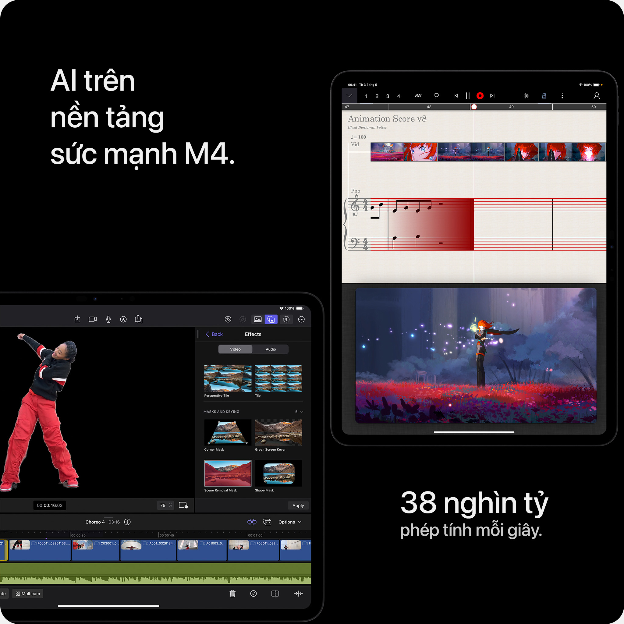 iPad Pro M4 có thể thực hiện mượt mà các tính năng Al được tích hợp trong iPadOS như Chú Thích Trực Tiếp cho phụ đề âm thanh theo thời than thực, Tra Cứu Hình Ảnh giúp xác định các đổi tượng trong video hoặc ảnh.