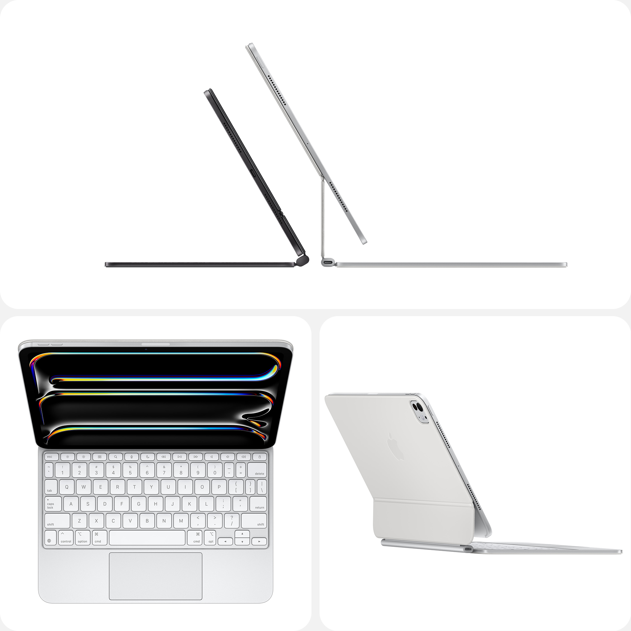 Magic Keyboard cho iPad Pro M4 mang lại trải nghiệm gõ phím tuyệt vời cùng bàn di chuột mượt mà, phần chất liệu cao su bên trong được thay thế bằng nhôm nguyên khối nhằm gia cố thêm sự chắc chắn cho chiếc bàn phím này. Layout được bổ sung thêm hàng phím chức năng giúp thao tác nhanh hơn.