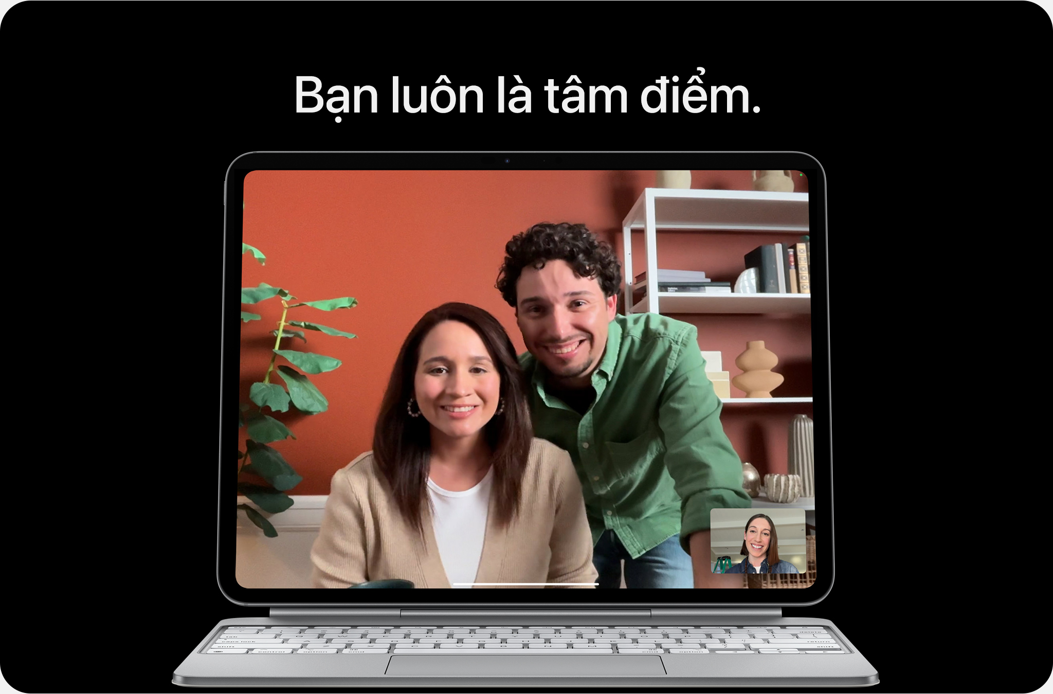 Camera trước Ultra Wide 12MP được đặt trên cạnh ngang cùng tính năng Center Stage để bạn luôn luôn là trung tâm trong những cuộc họp bằng Facetime