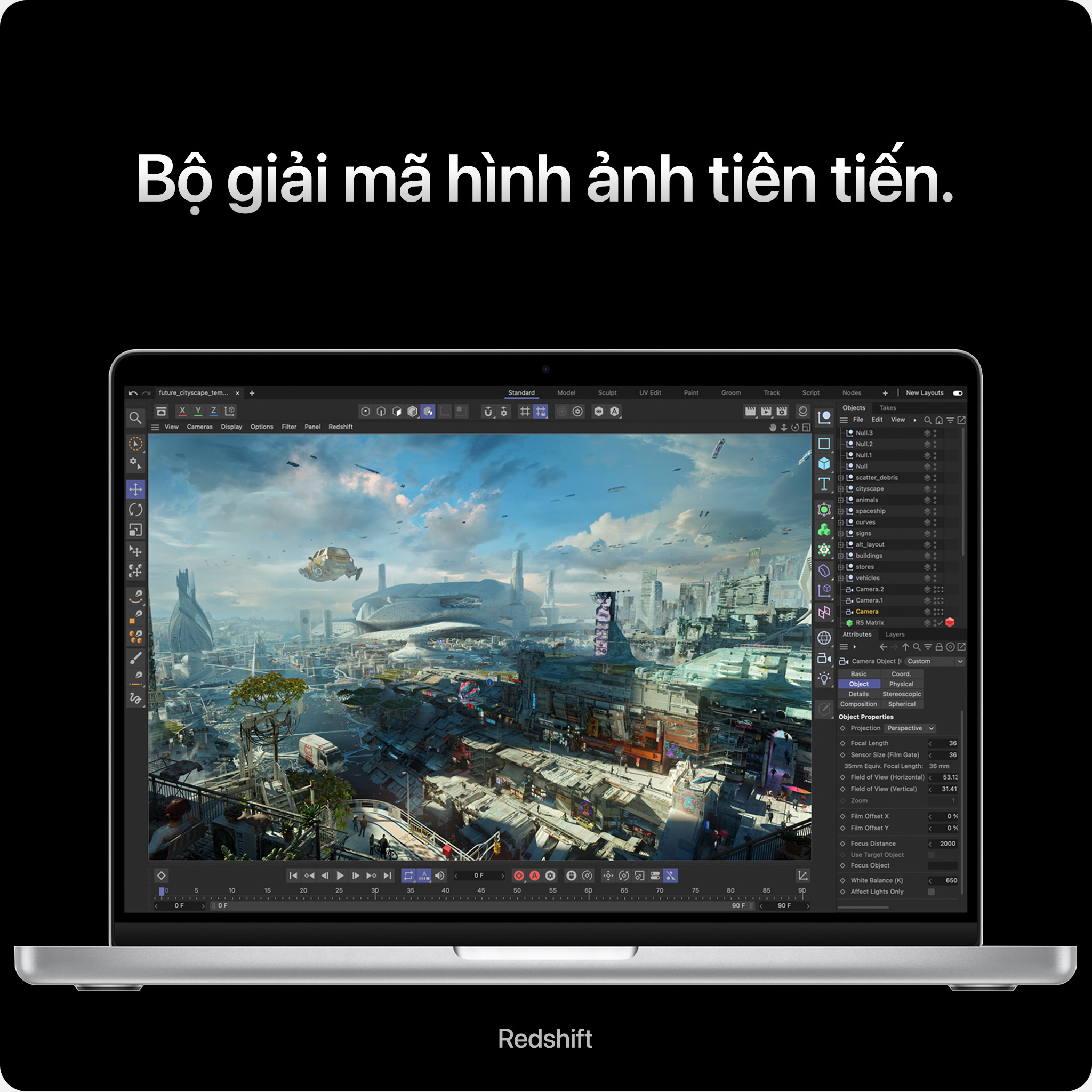 Một trong những điểm mạnh nhất của M1 Pro là khả năng tích hợp lên đến 16 nhân GPU, được thiết kế riêng để xử lý đồ họa phức tạp với tốc độ cao. So với các dòng chip Intel trước đây, M1 Pro có hiệu suất đồ họa nhanh gấp 2 lần, giúp bạn dễ dàng làm việc với các phần mềm chỉnh sửa ảnh, video chuyên nghiệp như Adobe Premiere Pro, Final Cut Pro, Blender...Hoặc các ứng dụng 3D đòi hỏi sức mạnh đồ họa cao. Cùng với khả năng hỗ trợ lên đến 32GB RAM (Unified Memory), giúp cải thiện khả năng phản hồi và xử lý tốt các công việc đòi hỏi tài nguyên cao, mang lại trải nghiệm liền mạch cho người dùng chuyên nghiệp.