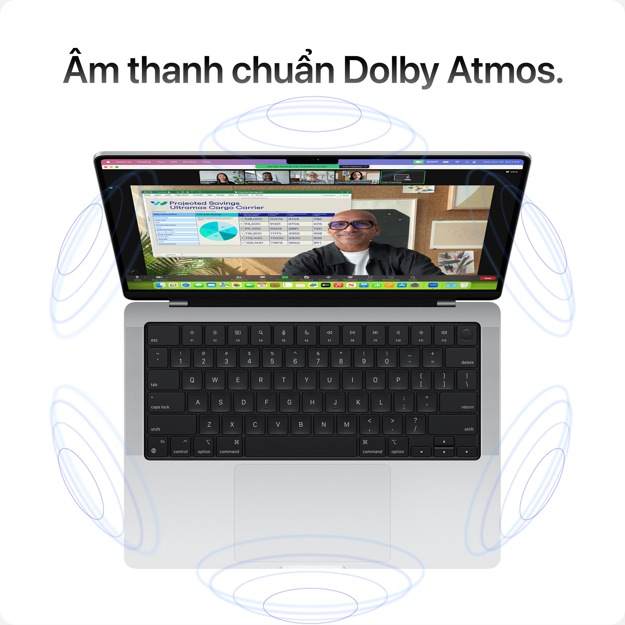 MacBook Pro phiên bản chip M1 Pro được trang bị hệ thống âm thanh 6 loa chất lượng cao, hỗ trợ Dolby Atmos, mang đến trải nghiệm âm thanh sống động và mạnh mẽ. Hệ thống này cho phép người dùng thưởng thức âm nhạc, phim ảnh và các tác vụ chỉnh sửa âm thanh một cách chân thực, rõ nét.