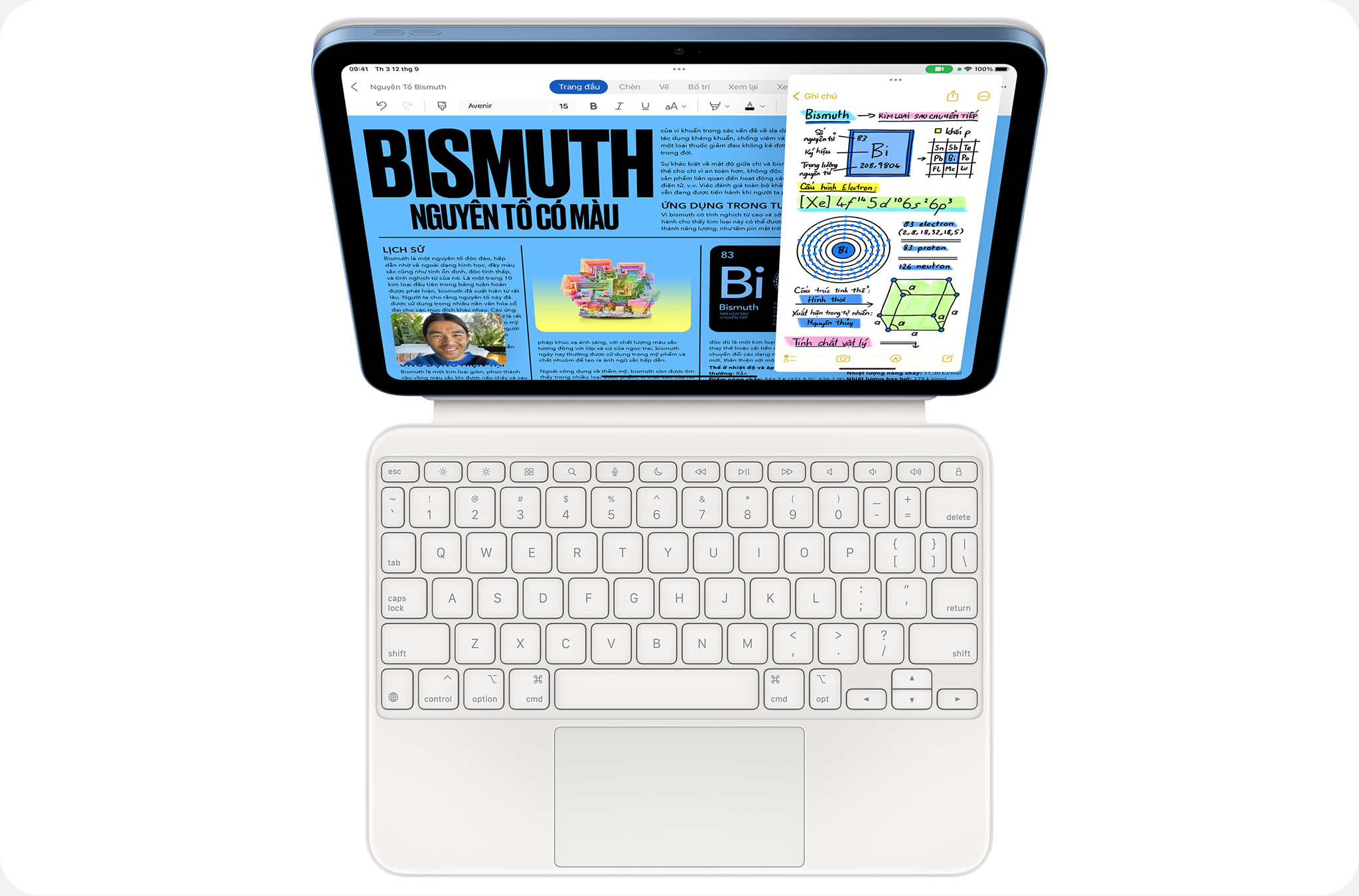 Chưa hết, Magic Keyboard Folio là chiếc bàn phím đầu tiên mà Apple áp dụng hàng phím chức năng, giúp truy cập nhanh vào các tính năng tiện lợi như tăng/giảm âm lượng, tùy chỉnh độ sáng màn hình và tắt iPad nhanh cùng nhiều tính năng khác. Ngoài ra, phần mặt lưng bàn phím còn được trang bị một chân đế, có thể điều chỉnh để tạo ra những góc nhìn phù hợp khi sử dụng.