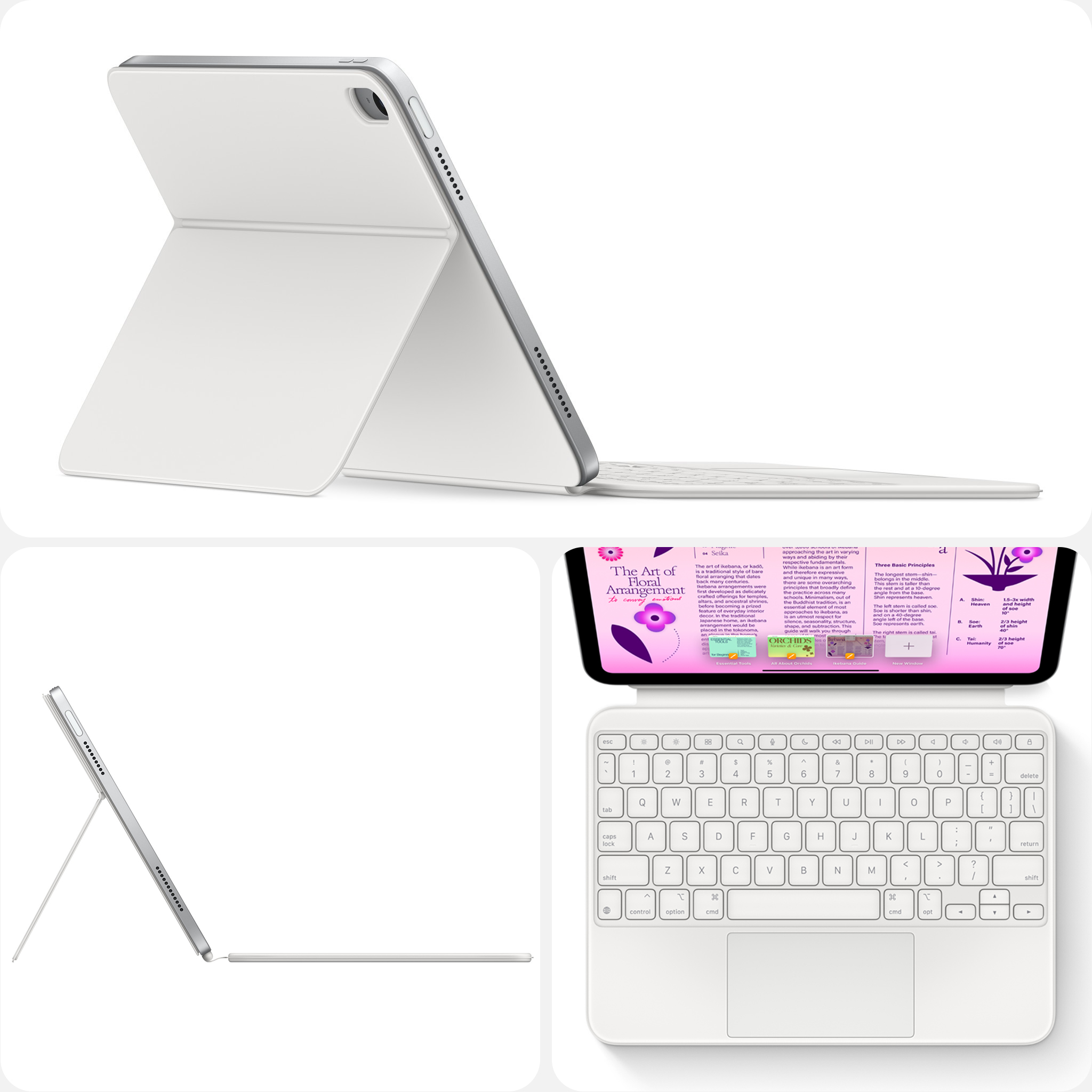 Magic Keyboard Folio là chiếc bàn phím đa năng, nó mang đến trải nghiệm gõ phím tuyệt vời, dãy 14 phím chức năng cho phép thao tác với các tiện ích nhanh chóng. Bàn di chuột mở ra nhiều cách để tương tác tới iPadOS. Thiết kế mới cho phép chiếc bàn phím Magic Keyboard Folio có thể tháo rời bàn phím và tấm bảo vệ mặt lưng, từ đó mở ra nhiều cách hơn để sử dụng chiếc bàn phím này.