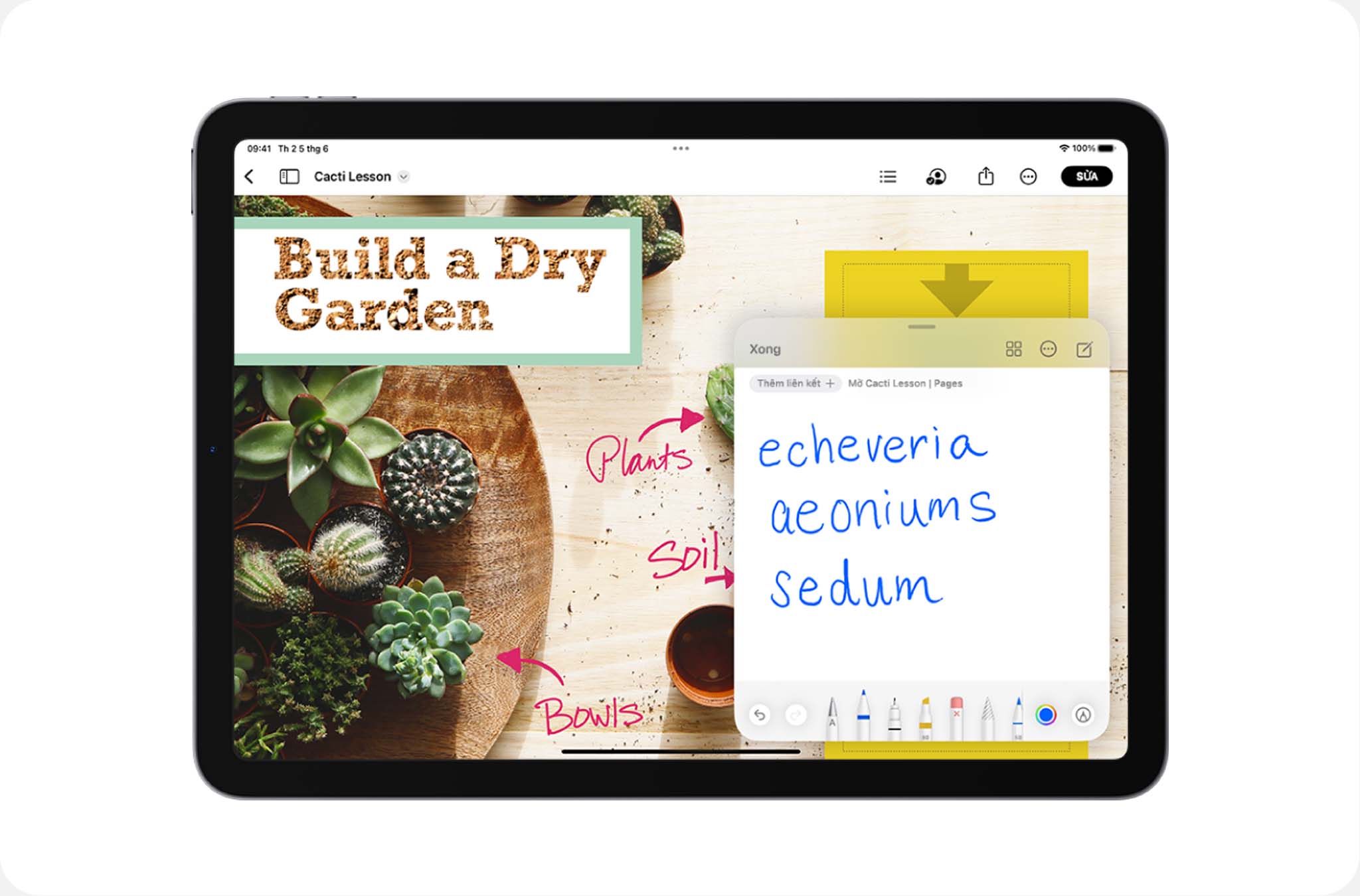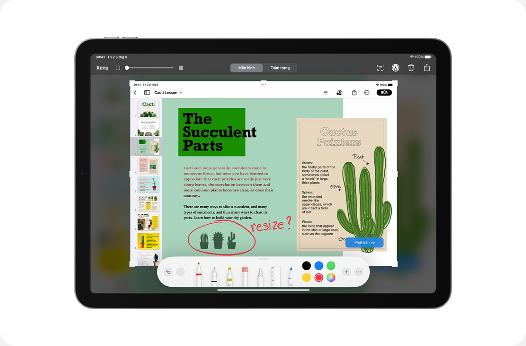 Chụp ảnh màn hình nhanh và đánh dấu trực tiếp lên ảnh là tính năng rất hữu ích khi làm việc nhóm, nó mang lại khả năng diễn đạt liền mạch và dễ hiểu hơn cho mọi thành viên. Để chụp ảnh màn hình nhanh, dùng Apple Pencil vuốt từ góc dưới cùng bên trái của iPad, sau khi chụp xong, hãy sử dụng những công cụ để viết ý tưởng của bạn rồi chia sẻ cho mọi người.